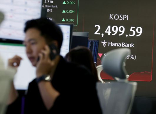 31일 오전 10시51분 기준 코스피 지수는 전 거래일 대비 61.51포인트(2.4%) 내린 2496.71을 나타낸다. 같은 시각 코스닥 지수는 전 거래일 대비 12.55포인트(1.81%) 내린 681.21이다.
