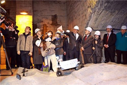 (태백=연합뉴스) 이상학 기자 = 강원 태백시가 한국지질자원연구원과 함께 폐광자원을 활용한 우주자원 개발의 가능성을 모색하는 실증 시연을 31일 옛 함태광업 폐갱도에서 진행했다.
