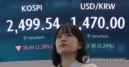 한국거래소에 따르면 이날 코스피 지수는 전 거래일 대비 76.86포인트(3.00%) 내린 2,481.12에 마감했다.
