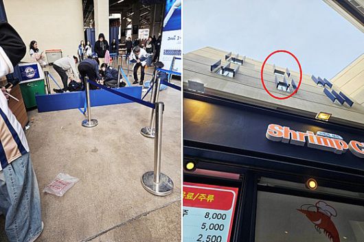 29일 경남 창원시 창원NC파크에서 열린 LG-NC 경기 중 매점 벽에 설치된 구조물이 아래로 떨어지는 사고가 나 관중 3명이 다쳤다. 독자 제공 |