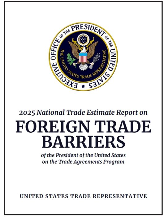 미국 무역대표부의 2025년 국가별 무역장벽 보고서 표지 |