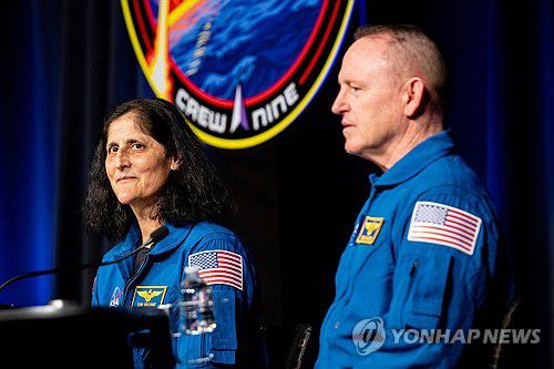 (로스앤젤레스=연합뉴스) 임미나 특파원 = 미국 보잉사의 우주캡슐 '스타라이너'를 타고 국제우주정거장(ISS)으로 시험비행을 떠났다가 예기치 않은 문제들로 9개월여 만에 돌아온 우주비행사 2명이 지구 귀환 후 첫 기자회견에서 시종일관 의연한 모습을 보였다.