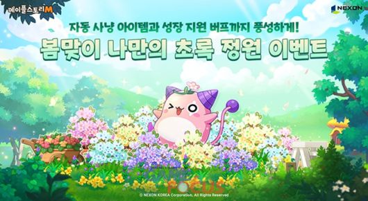 넥슨 '메이플M', 봄맞이 이벤트 '나만의 초록 정원' 실시…만우절 맞이 '김서방 색칠하기' 이벤트 진행 넥슨은 자사 모바일 MMORPG 메이플스토리M에서 봄맞이 이벤트 '나만의 초록 정원'을 진행한다. 총 3종으로 구성된 이벤트 중에는 만우절을 맞이해 4월 10일까지 진행하는 '김서방 색칠하기'도 있다. 색칠된 김서방의 모습과 배경을 기억해 이를 같은 모습으로 구현하면 점수를 획득할 수 있으며 누적 점수에 따라 '김서방 대미지 스킨', '고성능 순간이동의 돌', '뱀탕' 등의 아이템을 획득할 수 있다. 또, 이벤트 참여 시 일일 보상으로 '경험치 증가권'이 주어진다.