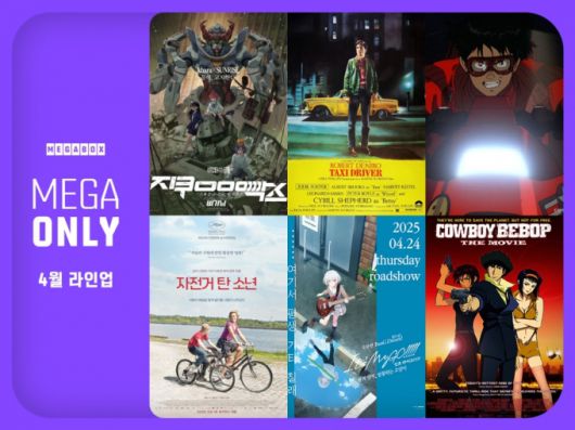 메가박스가 '메가 온리(MEGA ONLY)' 4월 단독 라인업을 1일 공개했다. '메가 온리'는 오직 메가박스에서만 볼 수 있는 모든 단독 콘텐츠를 의미하는 브랜드로 지난달 론칭했다.