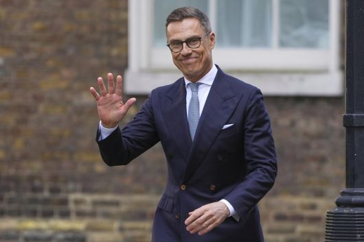 알렉산데르 스투브 핀란드 대통령은 도널드 트럼프 미국 대통령이 우크라이나 휴전을 거부하고 있는 블라디미르 푸틴 러시아 대통령에게 짜증이 난 것 같다고 밝혔다. 사진은 영국을 방문한 알렉산데르 스투브 핀란드 대통령이 31일(현지 시간) 런던 다우닝가에서 키어 스타머 영국 총리를 만나기 위해 이동하며 손을 흔들고 있는 모습. 2025.04.01 런던=AP 뉴시스 |