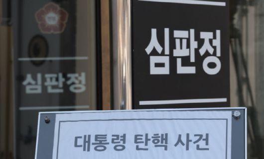 윤석열 대통령 탄핵심판 선고일이 4일로 발표된 1일 서울 종로구 헌법재판소 대심판정 앞에 대통령 탄핵 사건 관련 안내문이 놓여있다. (사진=연합뉴스) |