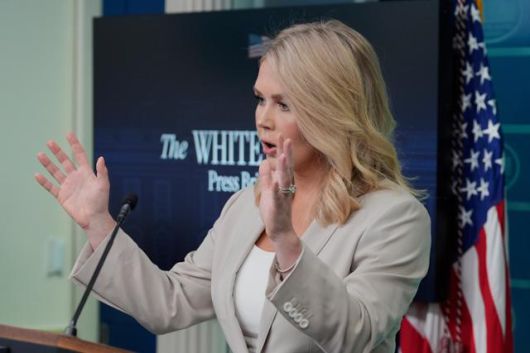캐럴라인 레빗 미국 백악관 대변인이 1일 워싱턴 백악관 제임스 브래디 언론 브리핑룸에서 기자들의 질문에 대답하고 있다. 워싱턴=AP 연합뉴스 |
