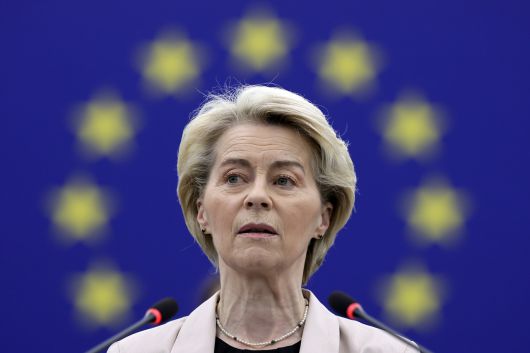 우르줄라 폰데어라이엔 EU 집행위원장은 1일(현지시간) 프랑스 스트라스부르에서 열린 유럽의회 본회에서 연설하고 있다. [EPA] |