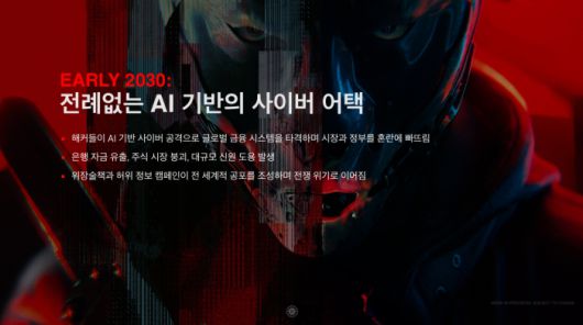 세계관은 ‘매트릭스’, ‘인셉션’ 등에서 영향을 받은 사이버펑크적인 형태다. <덴 오브 울브즈>의 이야기는 2030년 전례 없는 AI 기반의 사이버 어택에서 시작된다. 해커들은 AI 기반 사이버 공격으로 글로벌 금융 시스템을 타격해 시장과 정부를 혼란에 빠뜨렸다.