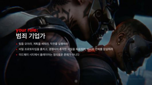 게임 속 세상을 구축하는 데 많은 시간과 자원이 투자됐다. 큰 규모의 세계관 뿐만 아니라, 도시를 형성하는 브랜드와 기업에 대한 독립적인 배경 이야기까지 세세하게 채워나갔다. 이런 이야기의 존재가 게임 플레이에 강한 목적을 부여하는 장치로 작용한다고 믿기 때문이다.