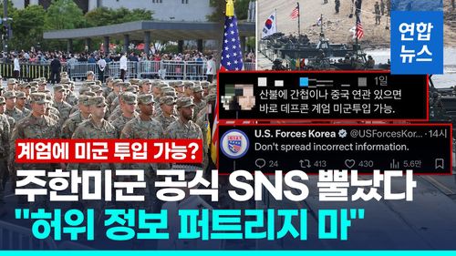 (서울=연합뉴스) 주한미군이 '계엄이 내려지면 미군이 투입될 수 있다'는 취지의 주장에 대해 공식 소셜미디어(SNS) 계정을 통해 "허위 정보"라고 밝혔습니다.