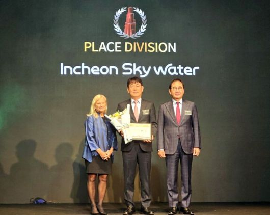 2일 인천시의 수돗물 브랜드 ‘인천하늘수’가 ‘2025 뉴욕페스티벌 대한민국-국가브랜드대상(The 2025 NYF K-NBA)’ 수돗물 부문에서 3년 연속 대상을 수상했다. 인천시 제공. |