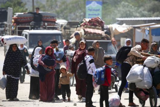 3월31일(현지시간) 가자지구 남부 라파에 이스라엘 공격으로 대피령이 떨어지면서 피난길에 오른 팔레스타인 주민들이 칸유니스에 도착한 모습/AFPBBNews=뉴스1 |