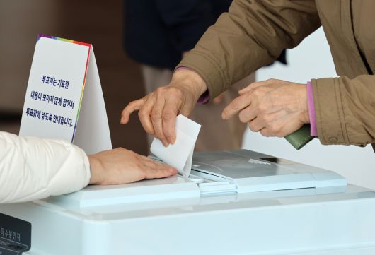 4ㆍ2재보궐선거 투표일인 2일 전남 담양군 담양읍 제2투표소가 마련된 담양문화회관에서 유권자가 투표하고 있다. 연합뉴스 |