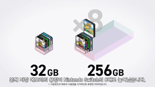 내장 저장 공간도 256GB로 기존 스위치 대비 8배 이상 커졌다. 스위치1의 저장 공간은 32GB다. 기존 대비 더 빨라진 데이터 읽기와 쓰기 속도를 지원해 게임 로딩 시간도 크게 단축될 전망이다.