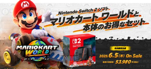 닌텐도 스위치2의 발매와 동시에 '마리오 카트' 시리즈 최신작 '마리오카트 월드'도 함께 출시되며 닌텐도 스위치2와 마리오 카트 월드가 함께 구성된 패키지 제품도 53,980엔(한화 약 53만원)에 발매될 예정이다.