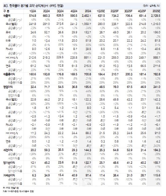 [이데일리 김응태 기자] NH투자증권은 3일 한국콜마(161890)에 대해 올해 1분기 실적이 시장 기대치에 부합할 것으로 예상되는 가운데, 미국 현지 생산 역량 확대로 관세 부과 국면에서 두각을 보일 것으로 전망했다. 이에 투자의견 ‘매수’를 유지하고, 목표주가는 8만원에서 8만5000원으로 상향 조정했다.