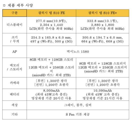 '갤럭시 탭 S10 FE 시리즈'는 더욱 슬림해진 디자인과 다양한 AI 인텔리전스 기능을 탑재했다. 가격은 메모리와 스토리지 등 세부 사양에 따라 다르며, '갤럭시 탭 S10 FE'는 69만8500원~99만7700원, '갤럭시 탭 S10 FE+'는 86만9000원~116만8200원이다.
