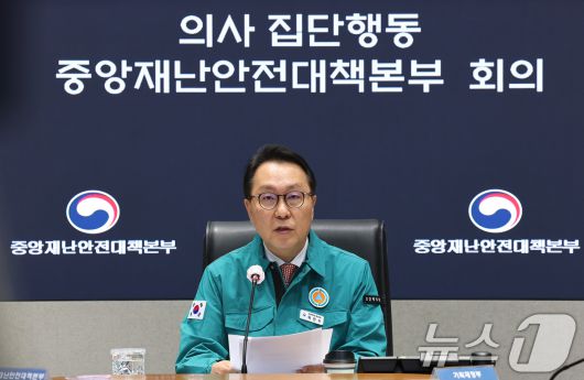 박민수 중앙재난안전대책본부 제1총괄조정관(보건복지부 제2차관)이 3일 오전 서울 종로구 정부서울청사에서 열린 의사 집단행동 중앙재난안전대책본부 회의에서 모두발언을 하고 있다. 2025.4.3/뉴스1 ⓒ News1 임세영 기자 |