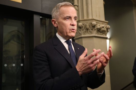 마크 카니 캐나다 총리가 2일(현지시간) 캐나다 오타와에서 열린 내각회의에 참석하기 전 기자들과 만나 발언하고 있다. AFP연합뉴스 |