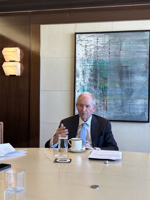 1일(현지시간) 미국 뉴욕 맨해튼 블랙스톤 본사 집무실에서 매일경제와 단독 인터뷰 중인 스티븐 슈워츠먼 블랙스톤 회장이 도널드 트럼프 미 대통령발 관세 악영향을 경고했다. 뉴욕 윤원섭 특파원 |
