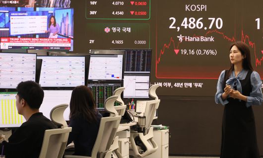 미국의 25% 상호관세 부과가 발표된 3일 코스피지수가 2440선 아래로 급락한 뒤 낙폭을 줄여 2480선을 탈환했다. 1조원에 달하는 외국인 순매도에도 불구하고 현시점이 저가라고 판단한 개인 투자자들이 매입에 나선 영향이다. 금융당국은 4일 예고된 윤석열 대통령에 대한 탄핵심판 선고 등으로 주식시장의 변동성이 더 확대할 것으로 보고 비상대응 체계에 돌입했다.