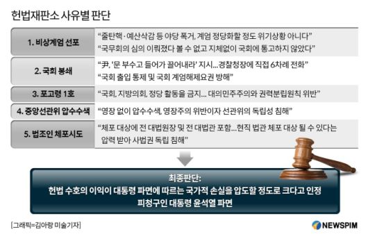 ◆"尹, 헌법수호 책무 저버리고 국민 신임 중대하게 배반"