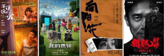 청각 장애인으로 연기 변신을 시도한 엑소 중국인 멤버 출신 장이싱(레이) 주연의 영화 '말하지 않는 사랑(원제:不說話的愛)', 잭 블랙 주연의 '마인크래프트' 게임의 실사 할리우드 영화 '마인크래프트 영화(중국명:我的世界大電影)', 흥행 보증수표 펑샤오강 감독의 영화 '해를 향하는 꽃(嚮陽.花)까지...