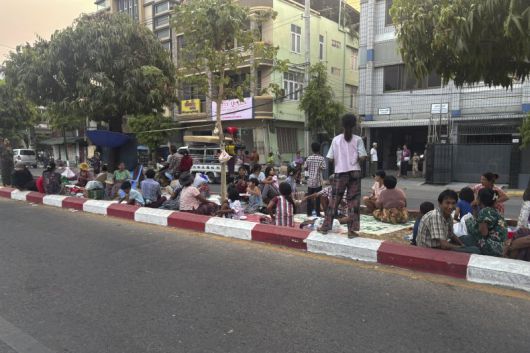 2일(현지 시간) 미얀마 만달레이 왕궁 인근 도로에서 이재민들이 쉬고 있다. 미얀마 군부는 지난 3월 28일 발생한 강진의 피해 수습을 위해 반군 세력과 3주간 휴전을 선포했다. AP 뉴시스 |