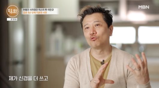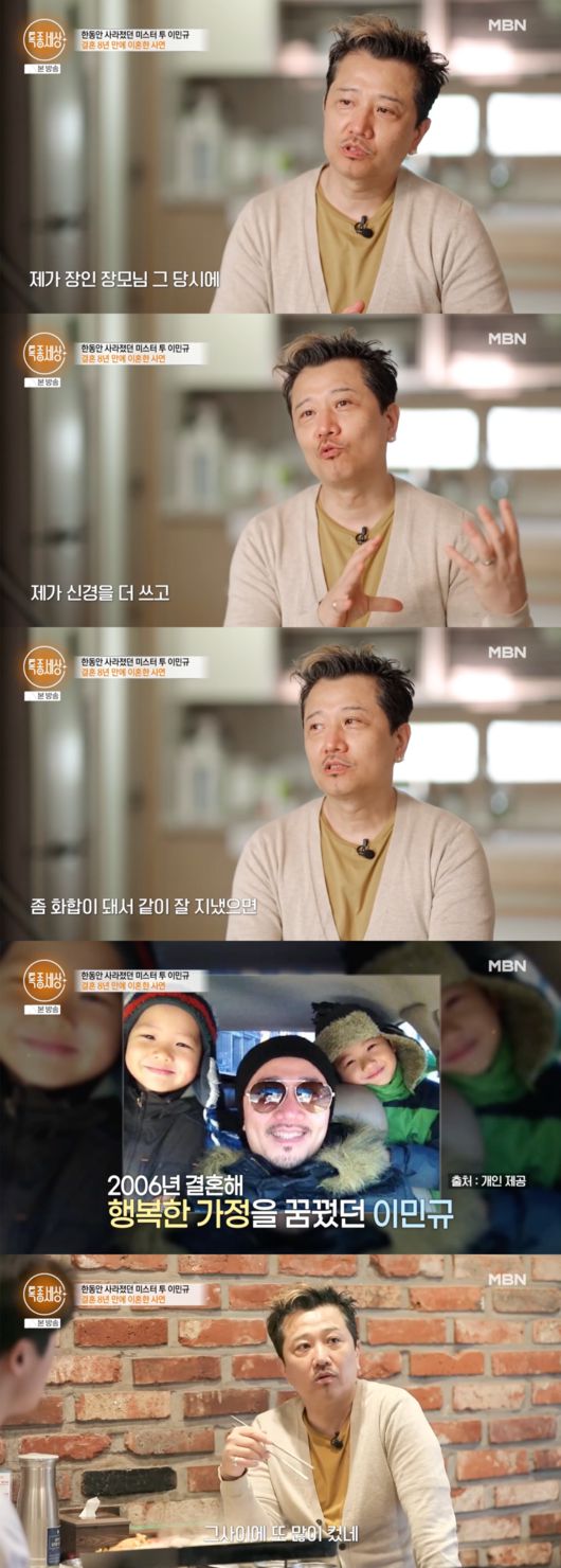 현재 이민규는 혼자 사는 상황이라고. 2006년 결혼해 8년 만에 이혼했다고 고백한 이민규는 “사실 저희만의 문제는 아니었다. 당시 장인, 장모님과 같이 살았는데, 제가 더 신경 쓰고 참고, 화합이 돼서 잘 지냈으면 괜찮았을텐데”라며 “자기 가족을 싫어하고 마찰이 있는 사람이라면 예뻐 보일 리는 없지 않냐. 거기서 시작된 어떤 갈등에서 비롯됐다”고 설명했다.