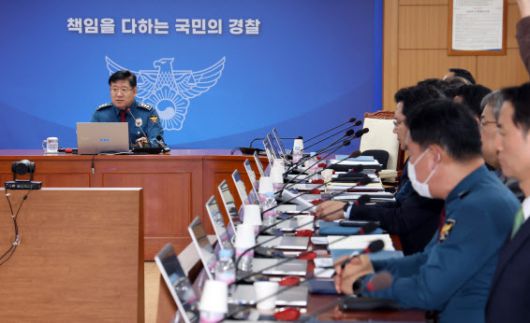 이호영 경찰청장 직무대행이 서울 서대문구 경찰청에서 열린 전국 경찰지휘관 화상회의에서 모두 발언을 하고 있다.(사진=뉴스1) |