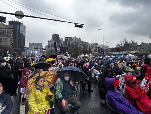 윤석열 전 대통령이 전날 헌법재판소로부터 탄핵 심판을 받으며 파면당했지만, 지지자들은 이를 쉽사리 받아들이지 못하는 모습이다. 자유통일당 등 대한민국바로세우기국민운동본부(대국본)는 이날 오전부터 광화문 동화면세점부터 덕수궁 앞까지 약 530m 차도에서 집회를 진행 중이다. 경찰에 따르면 대국본은 이날 집회에 참석하는 인원들을 20만명으로 신고했다. 경찰 비공식 집회 참가 추산 인원은 1만5000명이고, 집회 측 추산 인원은 100만명이다.