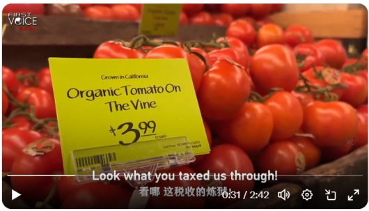 중국 다국어 관영매체 CGTN이 3일 소셜미디어 엑스에 올린 2분42초 분량의 뮤직비디오 ‘당신에게 부과된 세금을 봐(Look What You Taxed Us Through)’의 도입부이다.