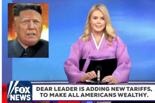 도널드 트럼프 미국 대통령의 관세 정책과 관련해 대통령을 북한 최고 지도자에 비유한 합성 사진이 미국에서 큰 인기를 끌고 있다.