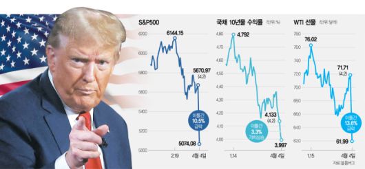 4일(현지 시간) 뉴욕 주식시장에서는 미국 3대 지수인 다우존스30산업평균지수와 스탠더드앤드푸어스(S&P)500지수, 나스닥지수가 5.50%, 5.97%, 5.82%씩 일제히 급락했다. 3일 3.98% 내렸던 다우지수는 이날 하락 폭을 더 키웠고 S&P500은 코로나19 팬데믹 초기 2020년 3월 16일 이후 5년 만에 최대 낙폭을 기록했다. 나스닥은 전 고점인 지난해 12월 16일(2만 204.58)보다 22.85%나 주저앉았다. 특히 미국 증시 호황을 이끌어왔던 엔비디아(-7.36%), 애플(-7.29%), 테슬라(-10.42%) 등 기술주들이 일제히 폭락했다. 미국에 대규모 투자를 약속한 대만의 TSMC 주가도 6.75% 빠졌다. 같은 날 독일 DAX40(-4.66%), 프랑스 CAC40(-4.26%), 영국 FTSE100(-4.95%) 등 주요국 증시도 줄줄이 내리막을 탔다.
