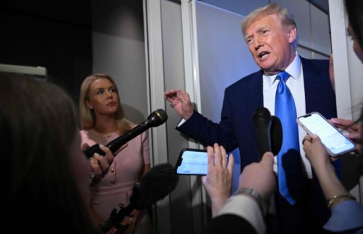 도널드 트럼프 미국 대통령이 6일(현지시간) 플로리다에서 워싱턴 인근 앤드루스 합동 기지로 이동하는 기내에서 취재진을 만나 "언젠가 사람들은 미국을 위한 관세가 매우 아름다운 것임을 깨닫게 될 것"이라고 말하고 있다. /AFPBBNews=뉴스1 |