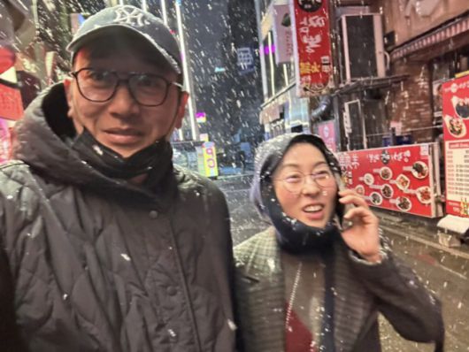 앞서 그는 지난 5일 SNS에 "혼자 보기 아깝다. 영화 같다. 멋진 하루? 황해?"라는 글과 올려 눈길을 끌었다. 이와 함께한 공개한 사진 속에는 강말금은 배우 하정우와 펑펑 쏟아지는 눈을 맞으며 함께 길거리를 걷고 있다. 통화 중인 강말금의 코믹한 표정, 두 사람의 바람직한 키 차이 등이 미소를 자아낸다.