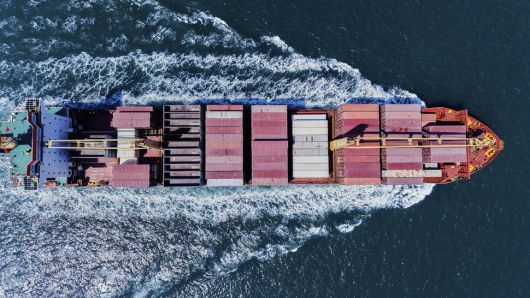 6일 중국 칭다오의 컨테이너 터미널에서 한 컨테이너선이 출항하고 있다. 칭다오/AP 연합뉴스 |