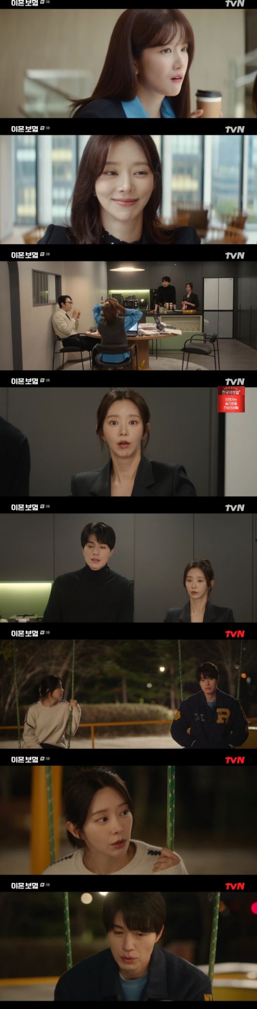 7일 방송된 tvN 새 월화드라마 '이혼보험' 3회에서는 노기준(이동욱 분)이 강한들(이주빈)의 손을 잡아주는 모습이 그려졌다.