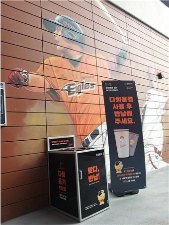 대전한화생명볼파크에 설치된 꿈씨다회용 컵 수거함. |