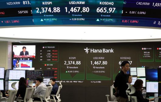 8일 유가증권시장은 전거래일보다 53포인트(2.28%) 오른 2381.2로 출발한 뒤 강세를 이어가고 있다. 이날 오전 11시 기준 2367.41로 상승폭이 소폭 줄었지만 시가총액 상위종목 대부분이 상승세다. 외국인과 기관이 모두 매도 중이지만 개인이 순매수 중이다.