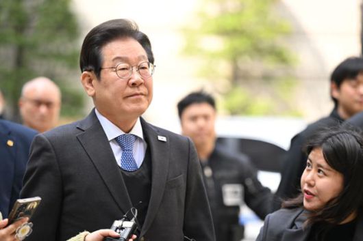 이재명 더불어민주당 대표가 8일 서울 서초구 서울중앙지법에서 열린 '대장동·위례·성남FC 사건' 공판에 출석하고 있다. 박시몬 기자
