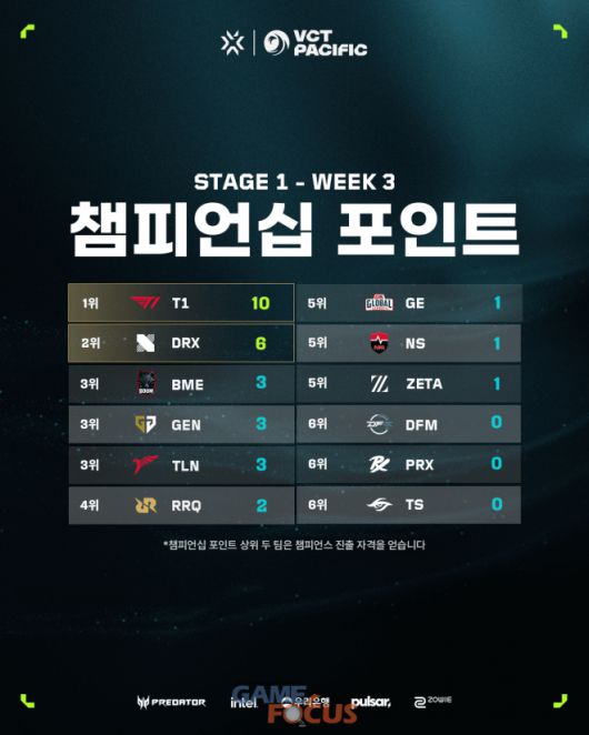 한국팀이 T1과 DRX가 발로란트 챔피언스 투어 퍼시픽 스테이지 1에서 나란히 3연승을 이어가면서 플레이오프 진출을 확정했다.