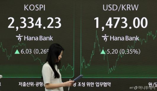 (서울=뉴스1) 박세연 기자 = 8일 서울 중구 하나은행 딜링룸 전광판에 종가 현황이 표시돼 있다. 이날 코스피는 전 거래일 종가와 비교해 포인트6.03(p)(0.26%) 상승한 2334.23으로 마감했다. 코스닥은 전 거래일 대비 7.15p(1.1%) 상승한 658.45로 거래를 마쳤다. 달러·원 환율은 오름세를 보이고 있다. 2025.4.8/뉴스1 Copyright (C) 뉴스1. All rights reserved. 무단 전재 및 재배포, AI학습 이용 금지. /사진=(서울=뉴스1) 박세연 기자 |