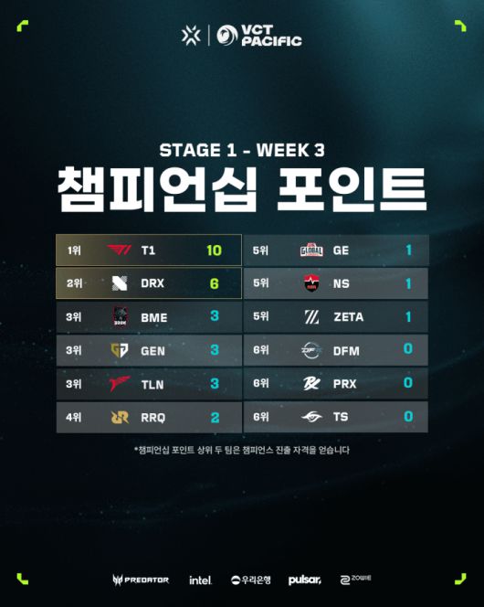 ▲ VCT 퍼시픽 스테이지 1 3주 차 챔피언십 포인트