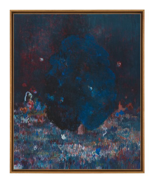 벨기에 출신 작가 해럴드 앤카트는 어둡고 고요한 밤의 풍경이 너무 내밀해서 눈에 보이지 않는 인간의 내면과 맞닿아 있다고 느꼈다. 밤에는 사물의 경계가 모호하고, 변화를 감지하기도 어렵다. 그의 신작 회화 'Sleeping Tree'(2025)에서는 나무의 짙푸른색 잎사귀들이 검붉은 밤하늘에 물들고 있는 듯하지만, 아래 땅에는 색색의 식물들이 무성하게 자라 마치 나무가 이들을 환하게 비추는 것처럼 보인다. 때로는 모순적이고, 걷잡을 수 없는 감정들을 형상화한 것일까.