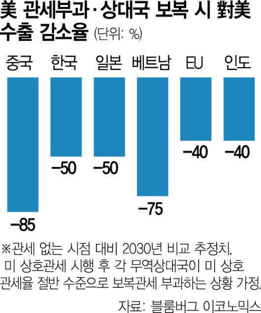 블룸버그통신은 트럼프 행정부가 상호관세를 강행하고 중국과 ‘치킨 게임’을 이어가면서 올해 국내총생산(GDP) 규모가 115조 달러(약 17경 원)에 달할 것으로 전망되는 세계경제가 ‘샌드위치 충격’을 받을 것으로 내다봤다.