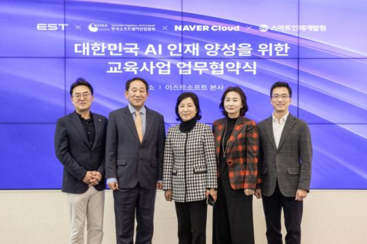 이번 협약식은 지난달 10일 이스트소프트 본사에서 정상원 이스트소프트 대표, 서성일 KOSA 부회장, 박연정 KOSA 전무, 임태건 네이버클라우드 전무, 반수경 스마트인재개발원 원장 등 각 기업 및 기관 주요 관계자가 참석한 가운데 진행됐다.