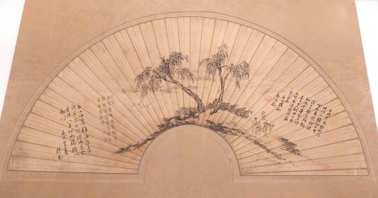 25점이 나온 2층 전시장은 18~19세기 단원을 비롯한 조선의 화인, 문인들과 19세기 조선 문인들에게 선물한 중국 청나라 문인들의 부채 그림과 글씨들이 주로 전시돼 있다. 알짬은 전시 대표작 중 하나로 꼽히는 18세기 회화 거장 단원 김홍도의 부채 그림. ‘기려원류’라는 제목으로 두개의 버드나무 아래 난 길로 나귀 타고 멀리 유람을 떠나는 늙은 도인의 모습을 그렸는데, 46살 나이의 단원이 중병을 앓고 난 뒤 기력을 회복하고 그린 가품으로 상자 안에 보관해야 한다는 스승 표암 강세황의 발문이 적힌 것이 이채롭다.