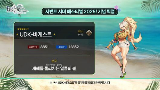 역사적이나 유명 신화 속 영웅이 아니라 페이트 시리즈 스핀오프 만화에 등장한 서번트다. 해당 서번트의 특이점을 살펴보면 보구 이펙트 문구가 한글로 표기됐다. 넷마블 개발진의 로컬라이징을 향한 노력을 알 수 있는 대목이다.